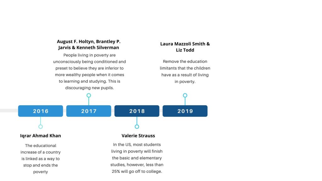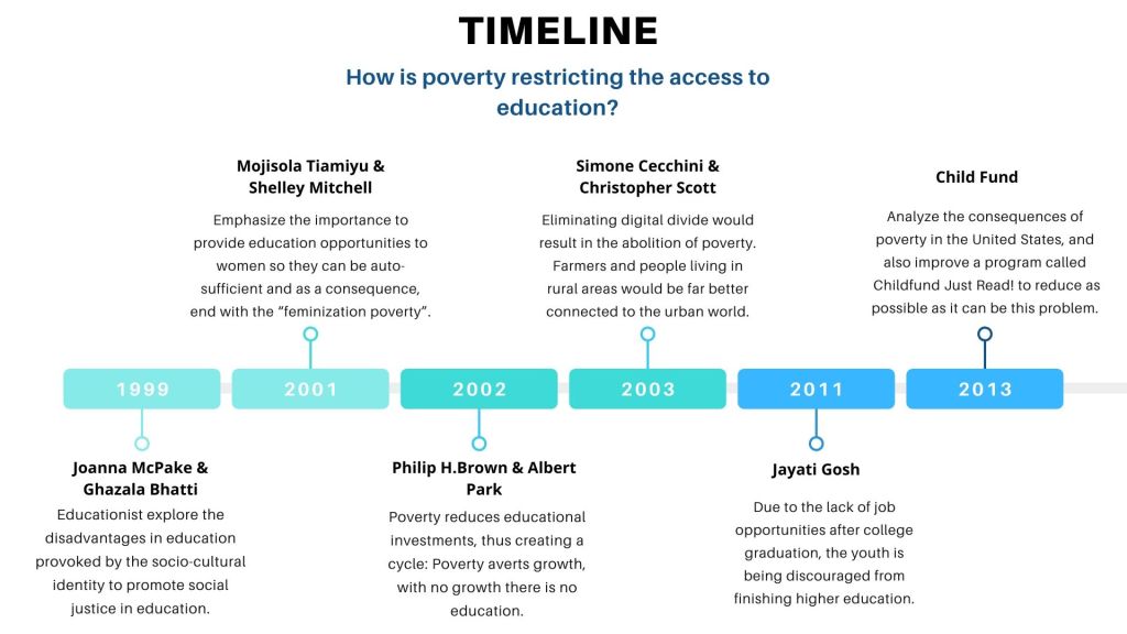 This timeline presents the different perspectives of the authors that talk about the relation between the social class that a person belongs to, and the facilities of access to education.